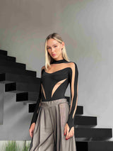 בגד גוף מהמם משולב בבד רשת שקוף ובבד אטום שחור