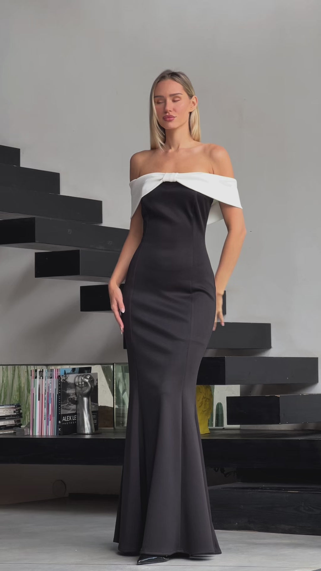 שמלה מהממת ואלגנטית מבד מחטב בגזרה מדויקת ומחמיאה לגוף משולבת בשחור ובלבן